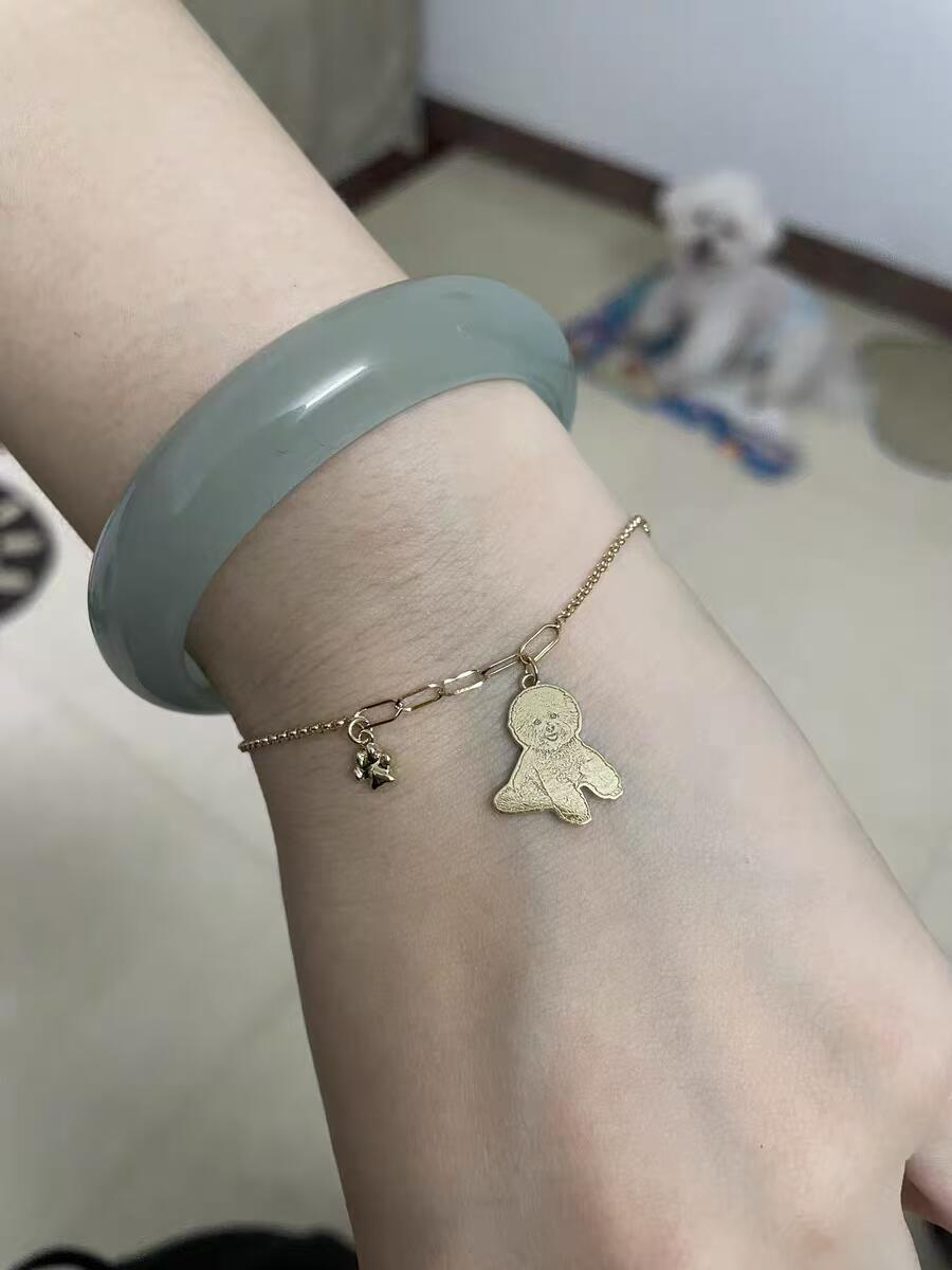 Cherish every moment with your pet by customizing a realistic photo engraving. This Custom 18K Gold Pet Photo Engraved Pendant Bracelet, paired with a paw print charm, combines exquisite handcrafted artistry with advanced 3D sculpting technology to delicately capture your pet's unique features. The elegant charm symbolizes the deep emotional bond between you and your beloved pet.