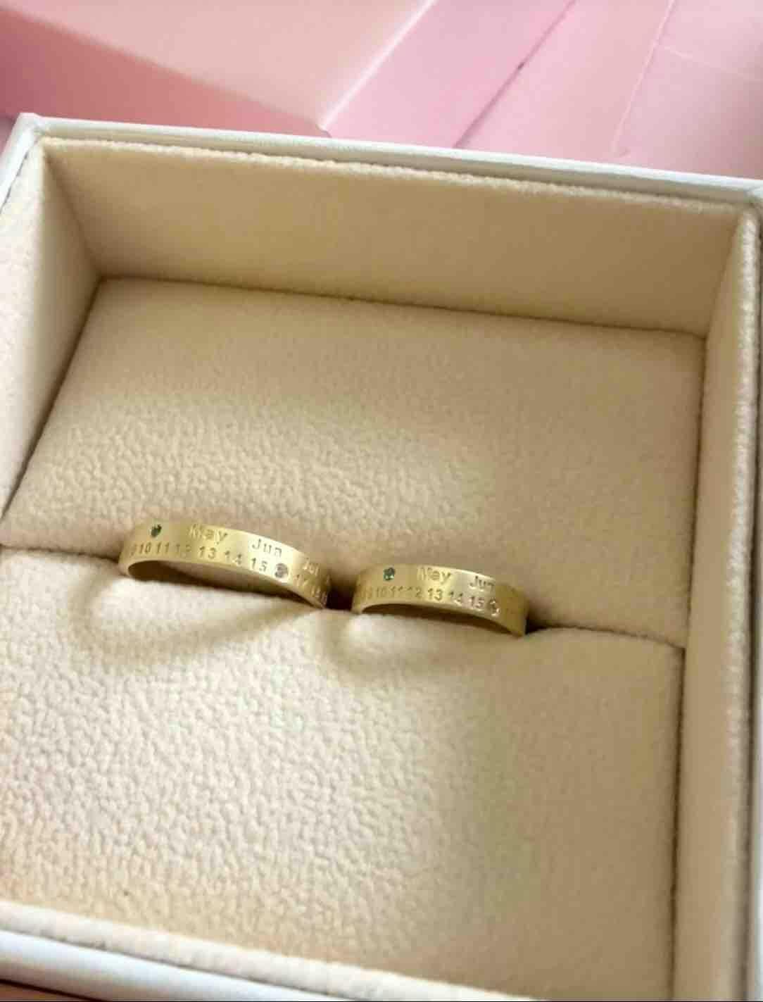 Customized anniversary couple rings, engraved with your unique love and vows 💍, capturing the important dates in your life — whether it's the day you first met, your wedding anniversary, or any cherished moment. Every ring is set with a natural gemstone corresponding to your custom date, carefully engraved with your anniversary (month, day), making it bold and unique. Let this symbol of love and memory remain timeless, witnessing your beautiful love story.